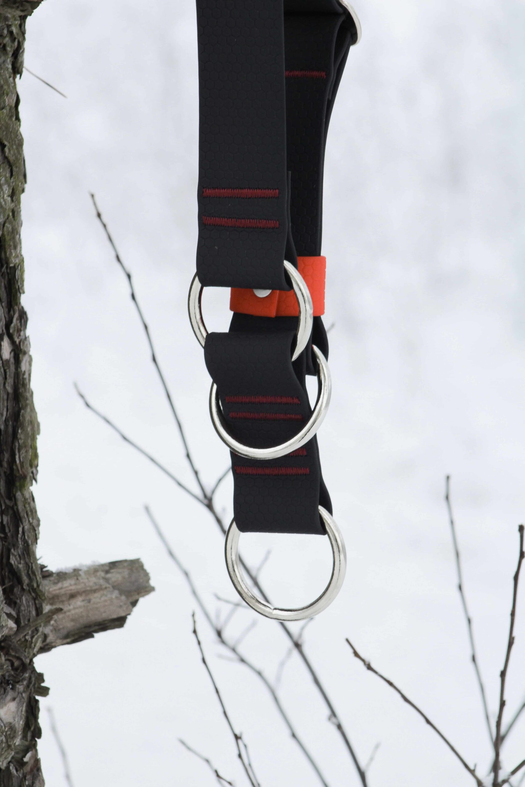Trwałe okucia zapewniają bezpieczeństwo prowadzenia psa oraz stabilność obroży.